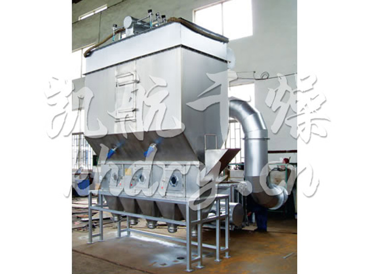 洁净的热风经阀板分配进入床体内,从加料器进入的湿物料被热风形成沸腾状态。由于热风与物料广泛接触,增强了传热传质的过程,因此在较短时间内就可干燥。如用连续型,物料从床体的一头进入,经过几十秒至几分钟沸腾干燥,自动从床体另一头流出。本设备一般进行负压操作。